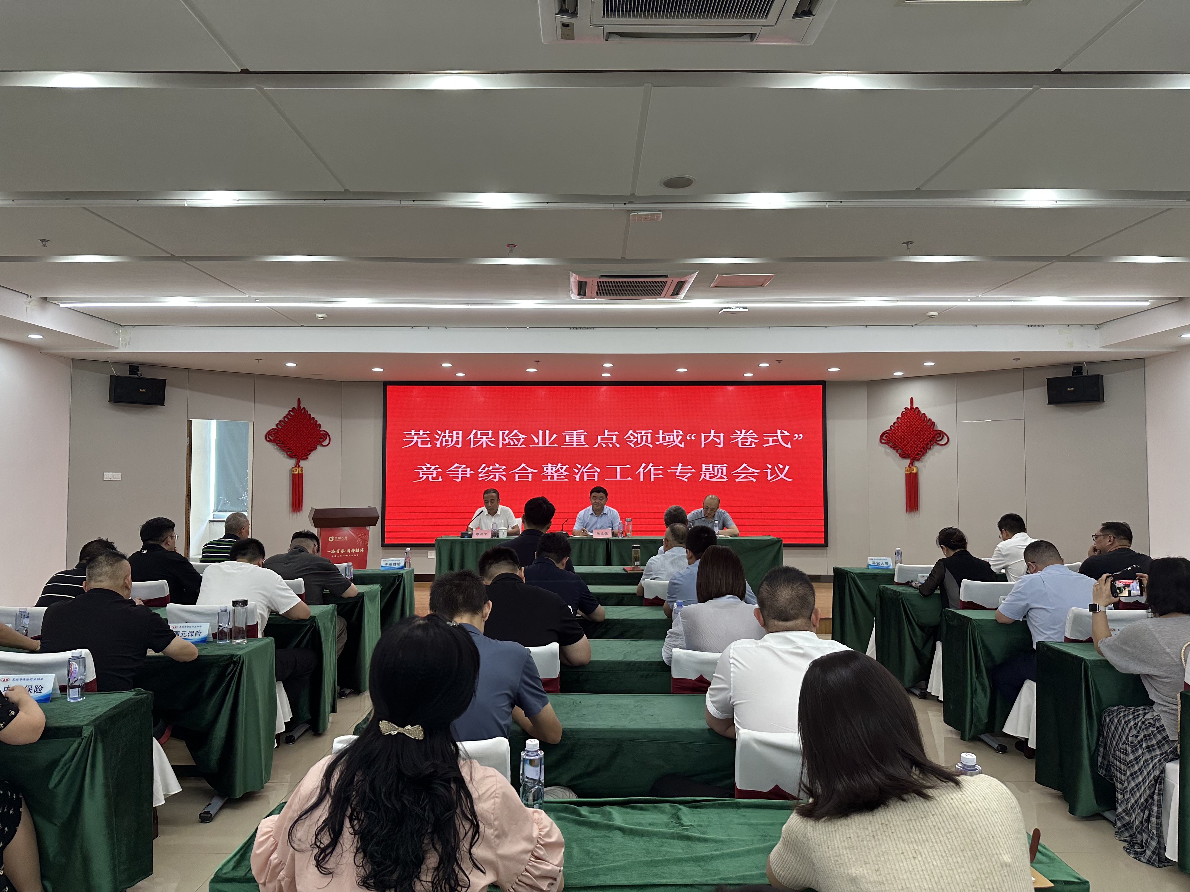8月21日,芜湖市保险业重点领域“内卷式”竞争综合整治工作专题会议在中国人寿芜湖分公司十六楼会议室召开。芜湖市保险业各金融机构分管领导、相关部门负责人等共计50余人参加。会议由芜湖市保险行业协会会长、中国人寿芜湖分公司总经理陈义强主持。