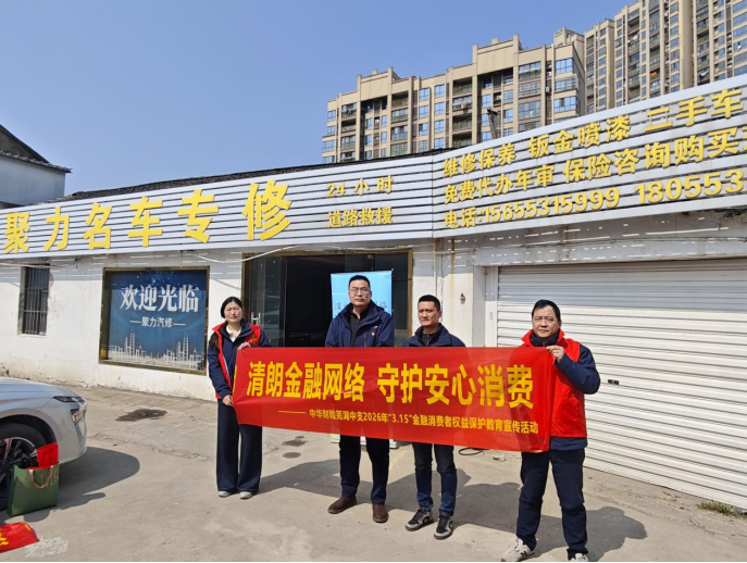 为积极响应国家金融监督管理总局关于2026年“3・15”金融消费者权益保护教育宣传活动号召,切实提升基层群众的金融安全意识,中华财险芜湖中支于3月10日走进无为市聚力综合维修厂,开展以“清朗金融网络,守护安心消费”为主题的金融消费者权益保护宣传活动。
