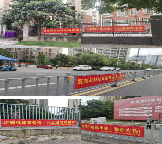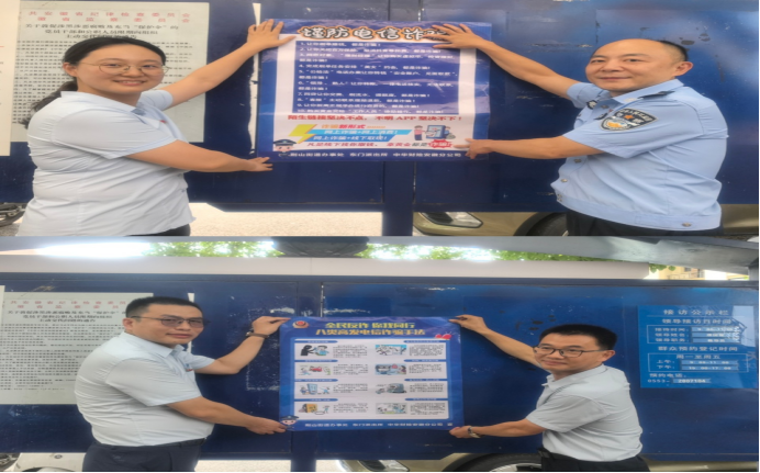 活动当天,三方工作人员深入荆山街道的多个社区,在荆山街道各个小区和街道均已悬挂并张贴反诈宣传海报和横幅。