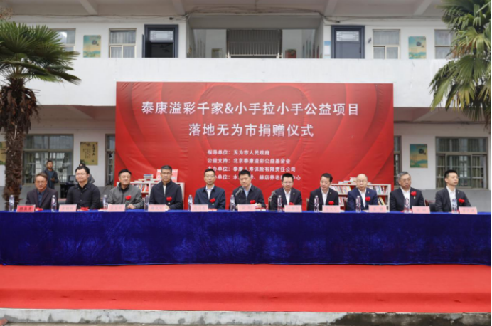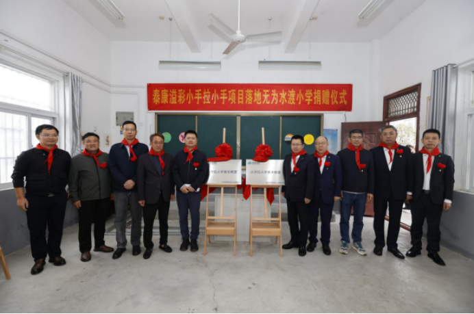 2025年10月20日上午,泰康“溢彩千家”与“小手拉小手”公益项目捐赠仪式在安徽省无为市水渡小学举行。无为市市委常委、副市长宋明,泰康保险集团助理总裁兼董事会秘书、泰康溢彩公益基金会理事长应惟伟等政企代表出席活动。仪式上,泰康溢彩公益基金会向赫店养老服务中心和水渡小学分别授牌。