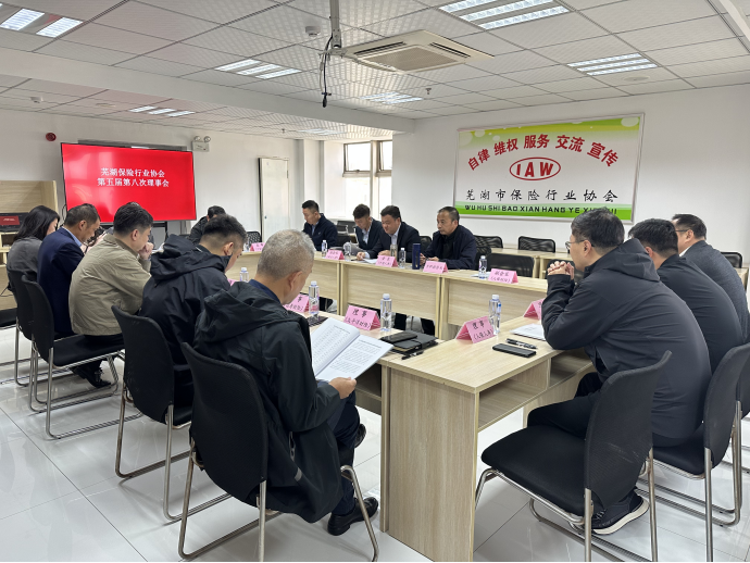 2025年10月22日下午,在协会11楼会议室召开芜湖市保险行业协会第五届第八次理事会会议,会议由会长陈义强主持,理事会成员参加会议,监事会全体成员及秘书处相关工作人员列席会议。