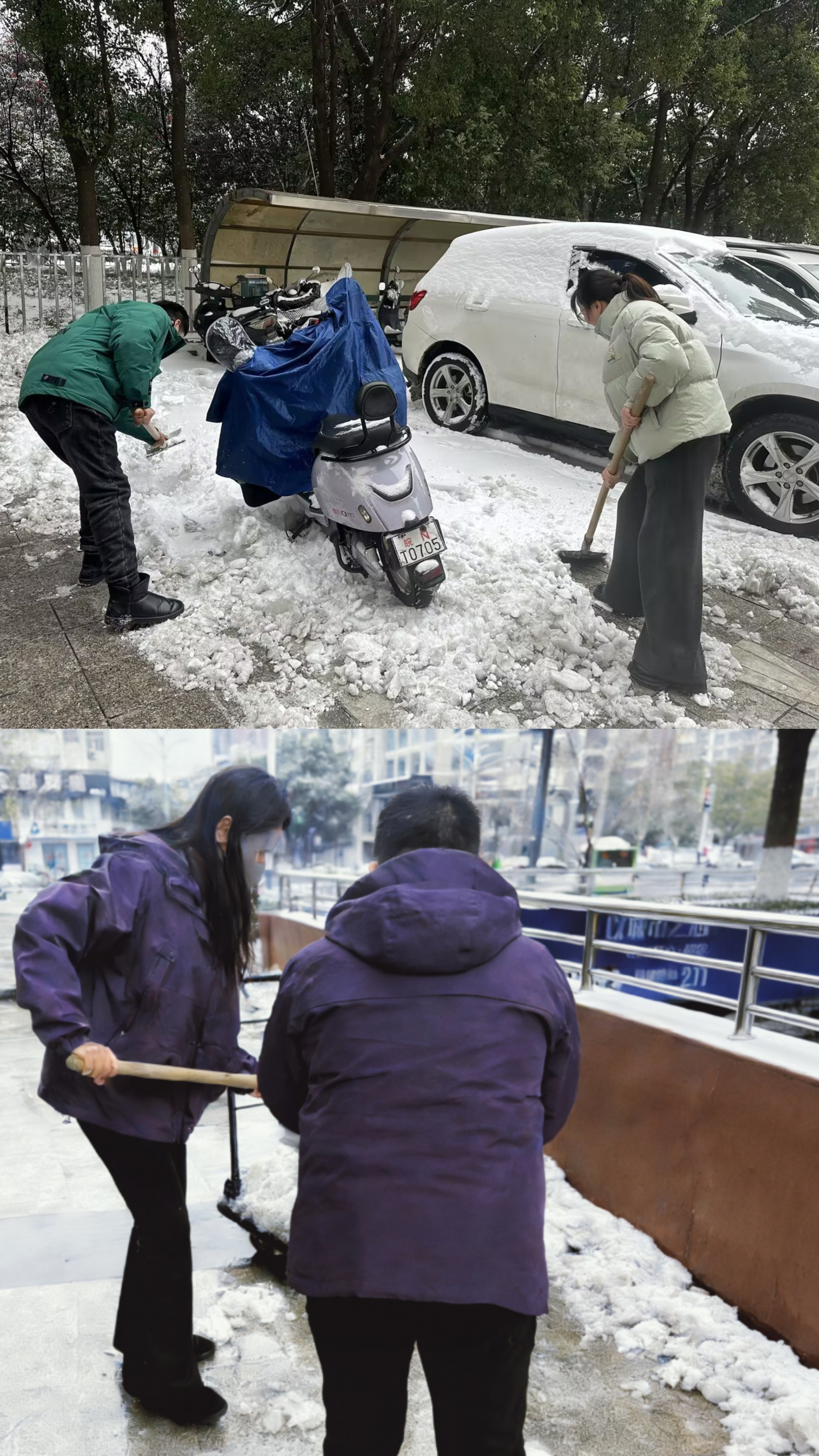 员工们手持工具分组协作,领导班子带头冲锋,不畏严寒铲雪除冰,重点清扫写字楼出入口、停车场门口及人行步道关键路段。经数小时奋战,安全通道全面打通,切实筑牢出行安全防线。此次行动既展现了中支团队团结协作的凝聚力,更以保险企业的责任担当践行“爱与责任”,用暖心举措传递阳光温度,彰显服务地方、守护民生的初心。