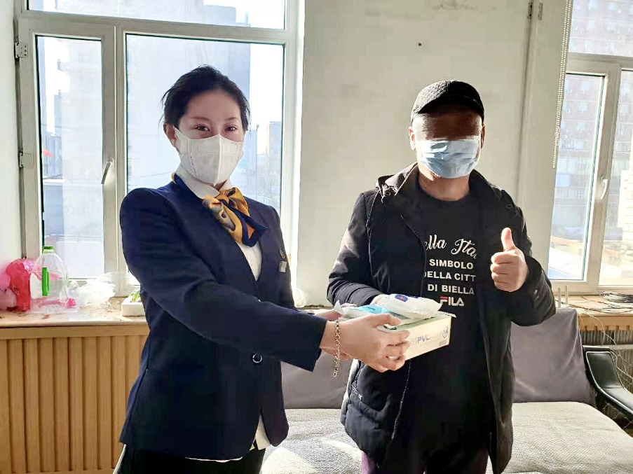 到达现场后,贾盛快速专业地完成车辆定损,并为客户发放了口罩,消毒湿巾,一次性手套等防疫物资。客户感动不已:“你们想得太周到了,不但处理速度快,还给我送来了防疫物资!”