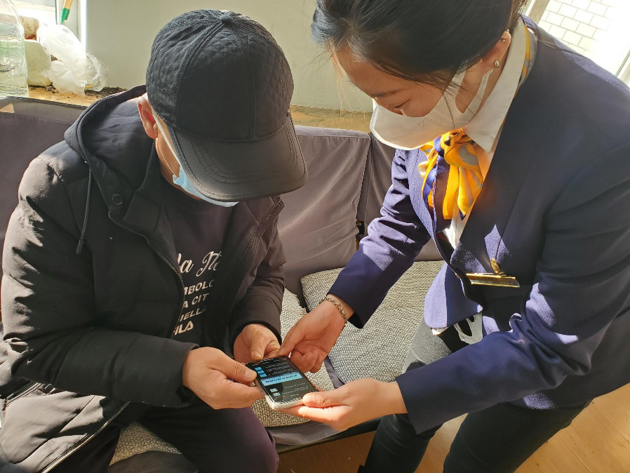 阳光财险吉林中支综合柜员王莉婷值班受理咨询业务,了解到老人年纪大,出行不便,便迅速带上防疫用品,来到老人家里,帮助李大爷通过阳光财险官微,连线阳光保险旗下三甲医院——阳光融和医院互联网内科、老年病科网络门诊的曹永升医生进行线上问诊。