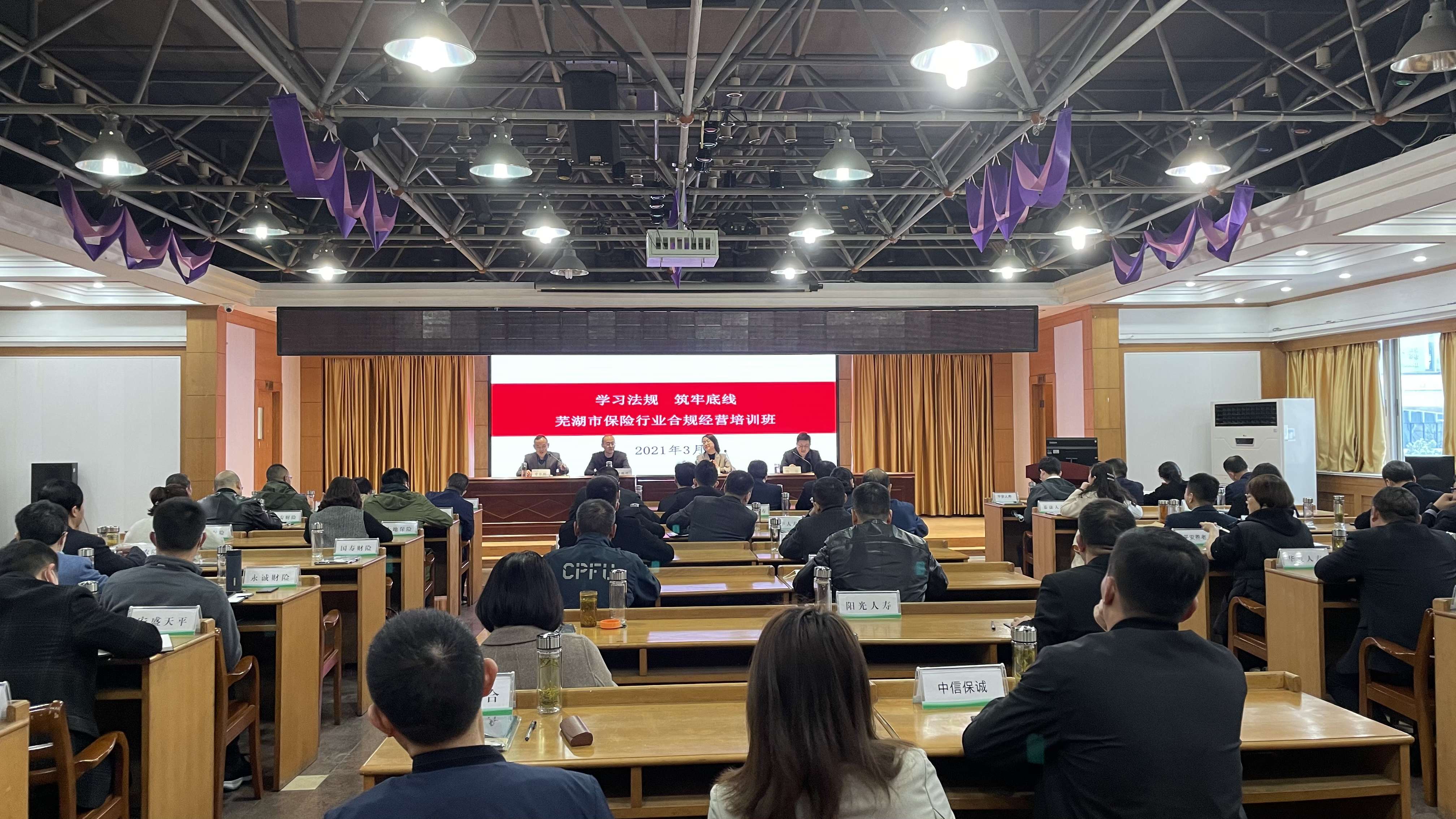 为了配合芜湖市银保监分局“保险行业合规建设年活动”的有序开展,按照“芜湖市保险行业合规建设年活动实施方案重点任务分解表”的安排,芜湖市保险行业协会于2021年25-26日在人保财险三楼会议室举办了一期面向公司高管的“法律、法规和监管政策”的学习培训班。