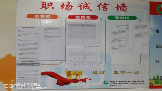 职场合规学习宣导内容言简意赅,配合职场安排的职场诚信墙和客户投诉红黑板,各支公司对课件案例张贴于职场诚信墙的警示栏,时刻对业务伙伴敲响警钟,对他们自身销售行为的自省起到很好的作用,同时进一步帮助销售伙伴加深合规销售底线的意识。