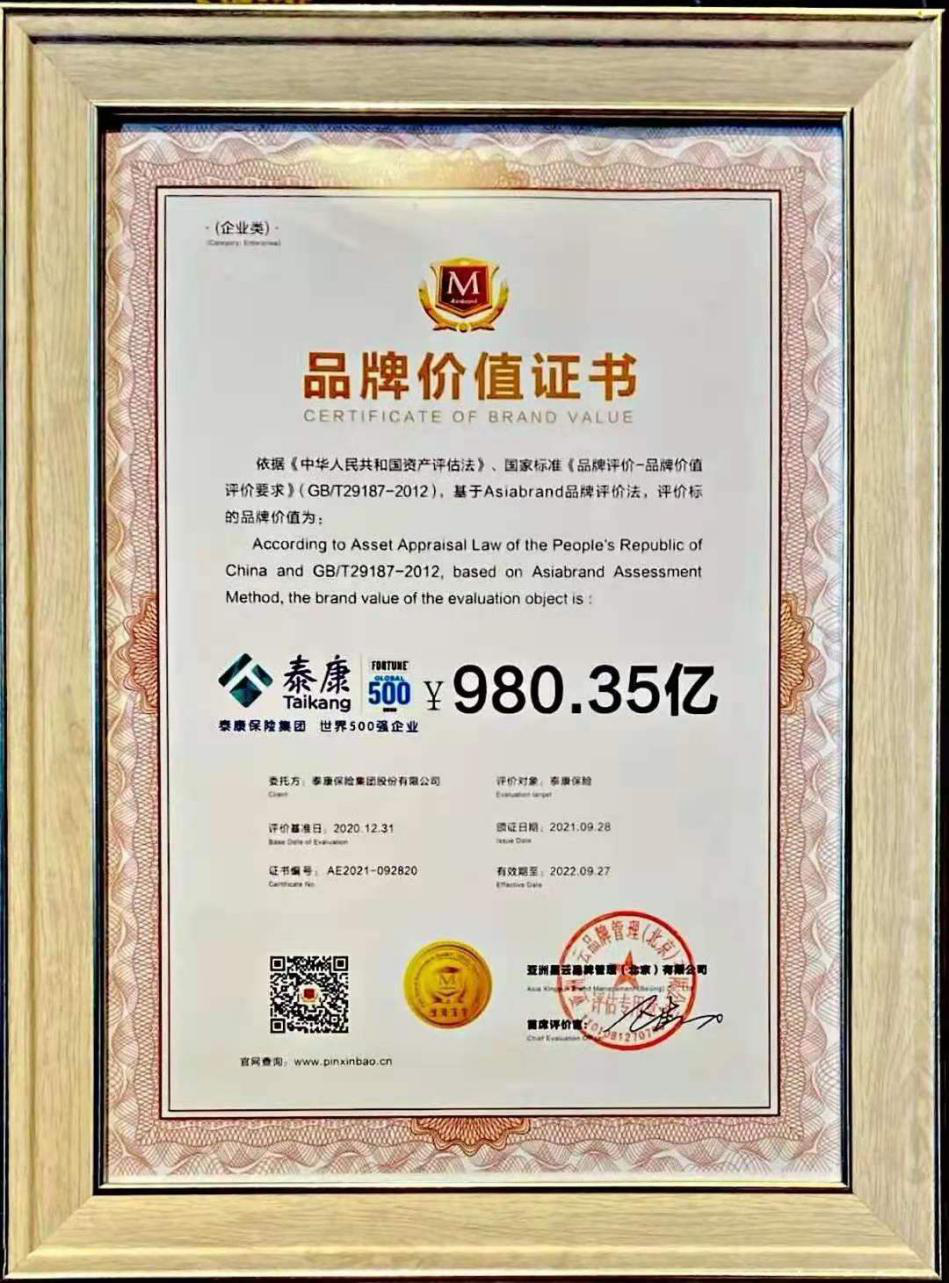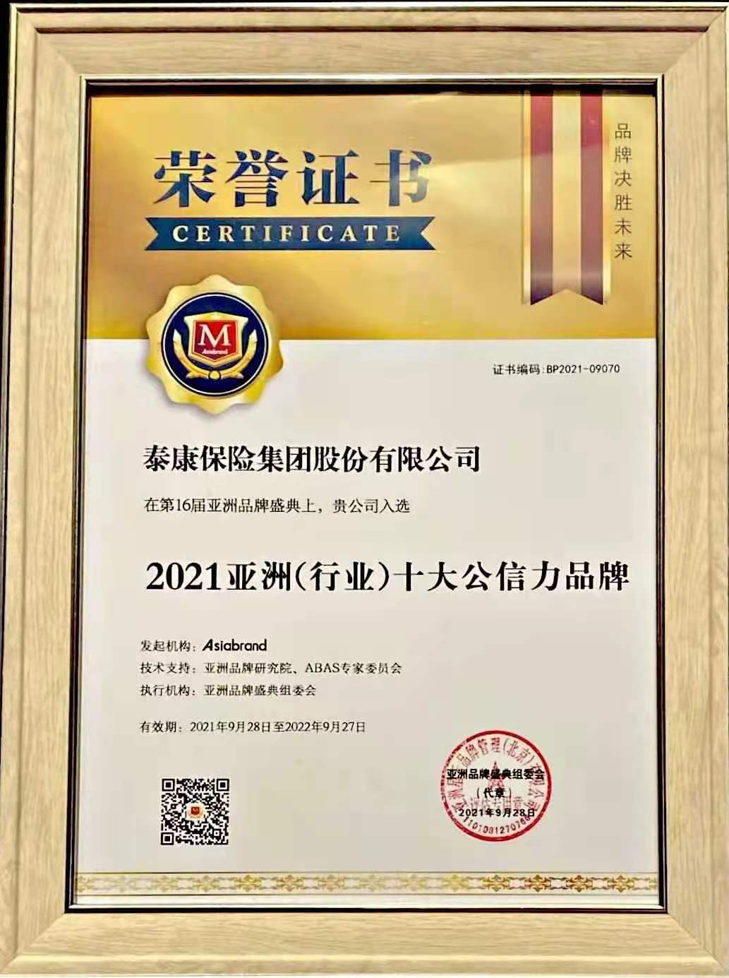 9月28日,由Asiabrand发起,中国亚洲经济发展协会、一带一路总商会、《环球时报》社、澳门商报、东盟-中国工商总会、亚太第一卫视联合主办的第16届亚洲品牌盛典在海口市隆重举行。泰康保险集团以980.35亿元的品牌价值上榜,这是泰康连续第8年获得该殊荣,荣居榜单第116位;同时,泰康保险集团创始人、董事长兼CEO陈东升荣膺“2021亚洲品牌年度人物”荣誉称号,泰康保险集团荣获“亚洲(行业)十大公信力品牌”。