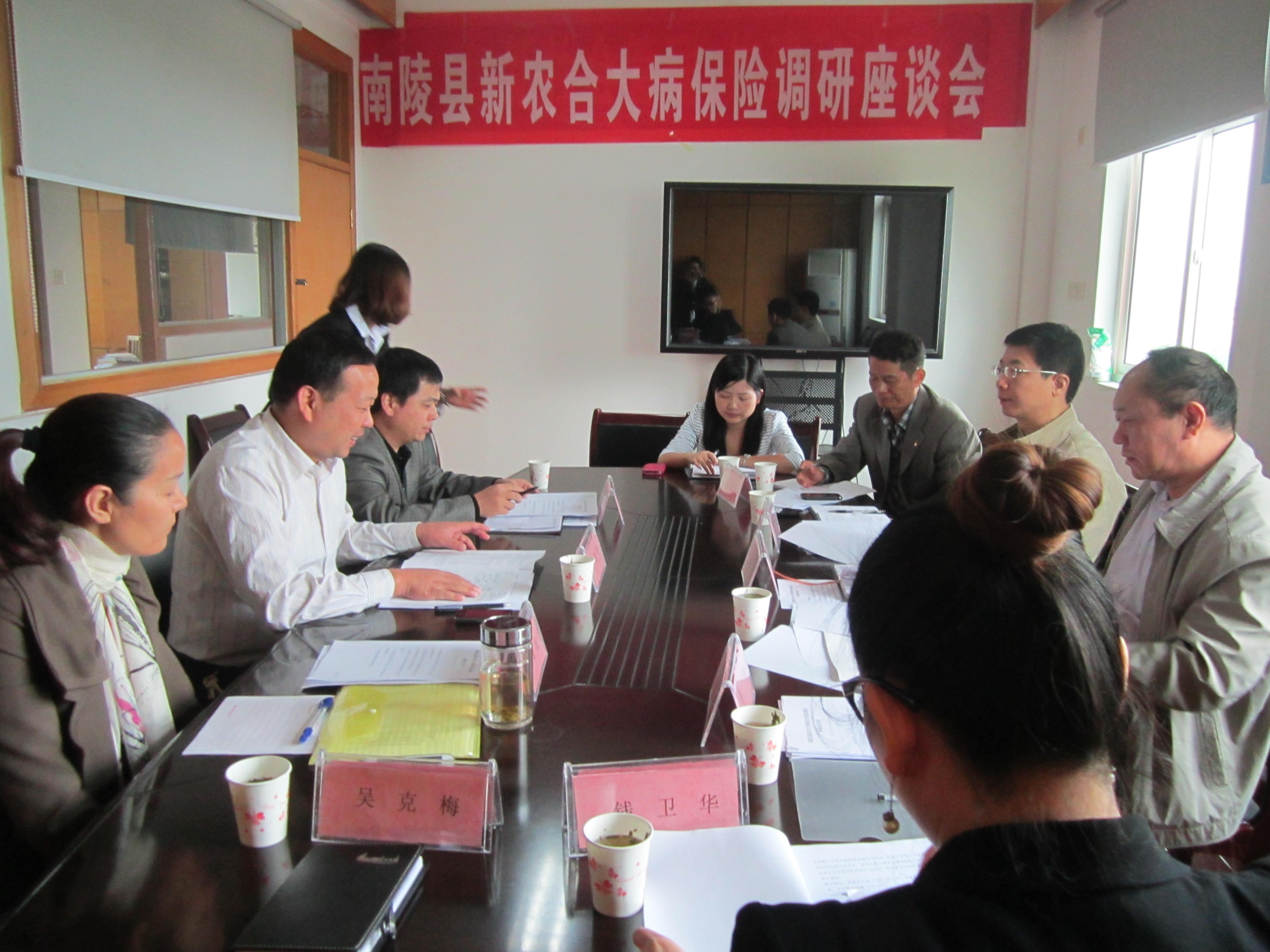 调研中,胡皖局长认真听取了陈刚总经理关于公司发展情况的汇报,并询问了一些关于政策性农业保险方面的问题,充分肯定了国元农业保险这几年来取得的成绩,也对公司今后的发展提出了要求和希望。随后胡局长走访了县卫生局,就国元农业保险公司开展的新农合大病医疗补偿保险进行了座谈。会上,县卫生局领导汇报了南陵县政府和国元农险南陵支公司创新开展的“新农合”试点工作的做法,胡皖局长听了很高兴的说:“南陵县创新的模式在国家六部委文件出台之前,取得了一些经验,为今年的“新农合”试点工作开了个好头,要认真总结经验,更加完善各项政策和工作流程,真正让该险种今后的推广得民心,顺民意。