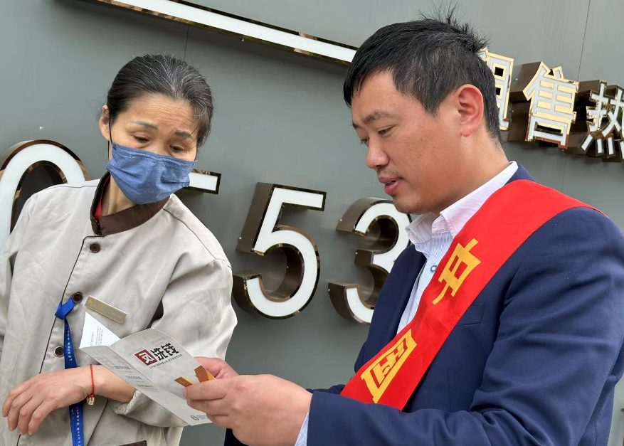 2023年4月13日上午,芜湖中支组织员工在在芜湖市弋江区金鹰世界中心写字楼和广场开展“4·15”全民国家安全教育日宣传活动。