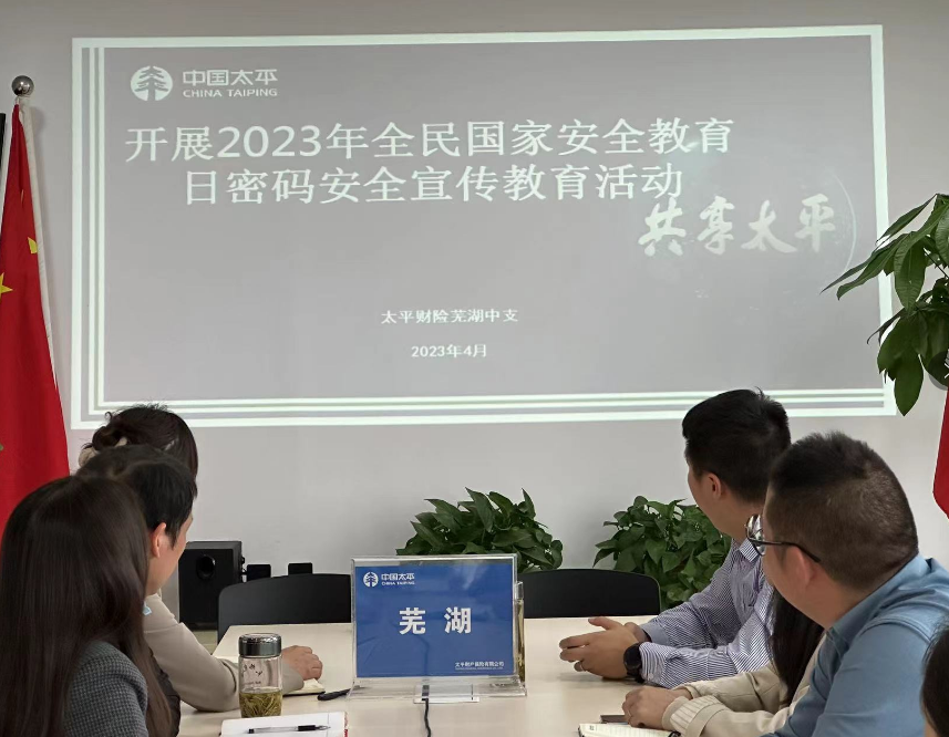 2023年4月15日是第八个全民国家安全教育日。为深入学习宣传贯彻党的二十大精神,贯彻落实习近平总书记关于全面加强国家安全教育的重要指示精神,提高全民国家安全意识。芜湖中支多措并举,组织员工学习密码法,播放安全教育宣传片、开展户外宣传等内容丰富系列宣教活动。