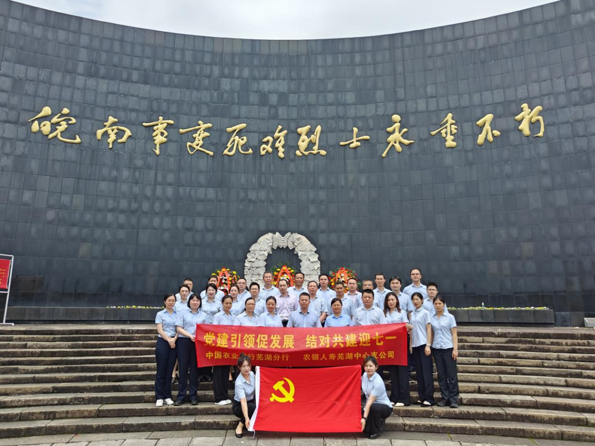 为进一步促进行司双方学习交流,充分发挥基层党建核心引领作用,实现“以党建促共建、以共建促合作、以合作促发展”的党建联动工作新局面。7月1日,农银人寿芜湖中支联合农业银行芜湖分行开展“党建引领促发展 结对共建迎七一”活动,前往皖南事变烈士陵园、新四军军部旧址等红色教育基地,踏寻红色遗迹、缅怀革命先烈、铭记英雄事迹、发扬革命精神。