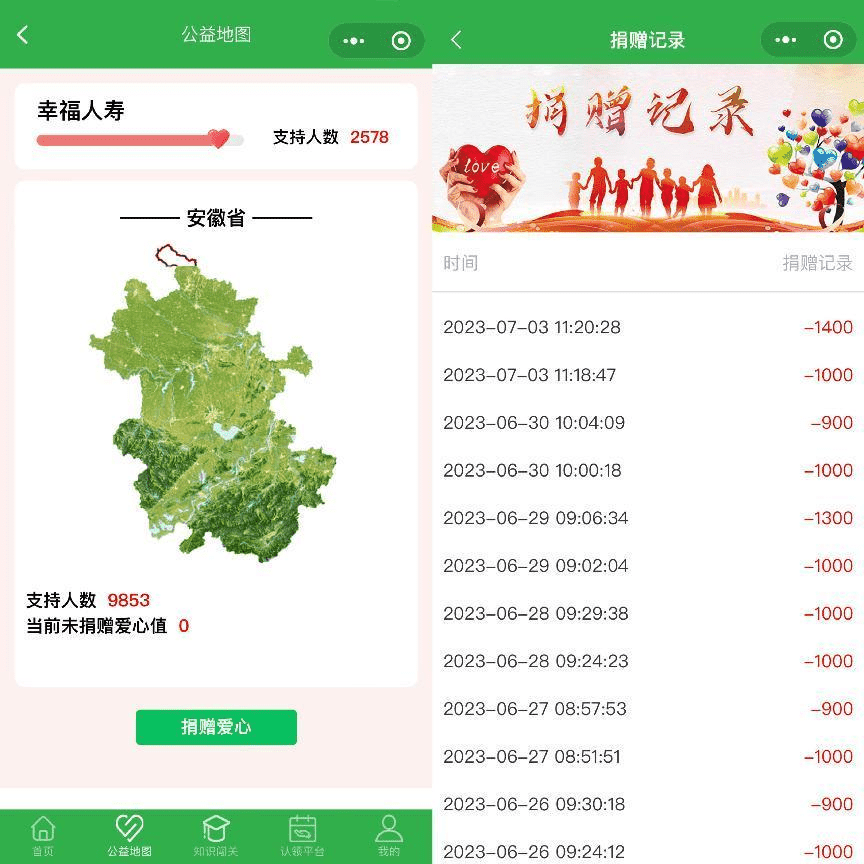 1、从6月末以来,芜湖中支组织内外勤及客户参与“健康生活每一天”保险公益活动,每天参加知识闯关,监测心率、呼吸、血氧等指标进行健康检测活动,并在微信小程序中进行捐赠爱心。本次活动参与人数13多人,共捐赠30多万爱心值。